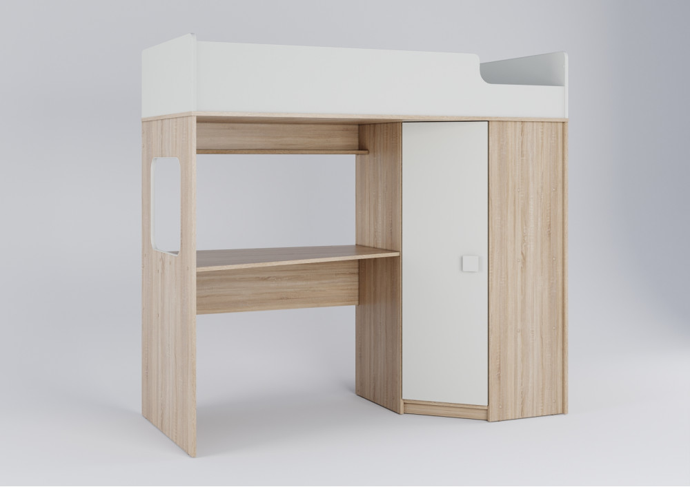 Учебная зона со столом под спальным местом открывает возможности для письменных работ,а также здесь удобно расположить ноутбук.