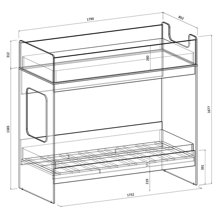 Кровать занимает немного места - прекрасное решение для площади малых габаритов, экономия пространства.